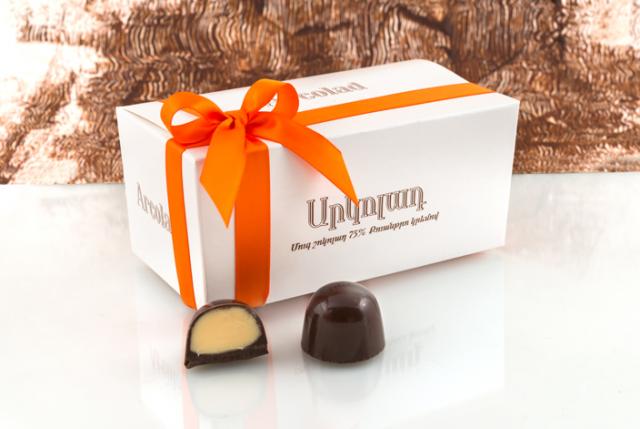 Ingredients: dark chocolate (cocoa mass, sugar, cocoa butter, emulsifier: soya lecithin, emulsifier E476), cointreau cream: sugar, cocoa butter, whole milk powder, cream, Cointreau, concentrated whey, alcohol, milk proteins, emulsifier: soya lecithin, natural vanilla flavouring). Total dry cocoa solids in chocolate: 75%.